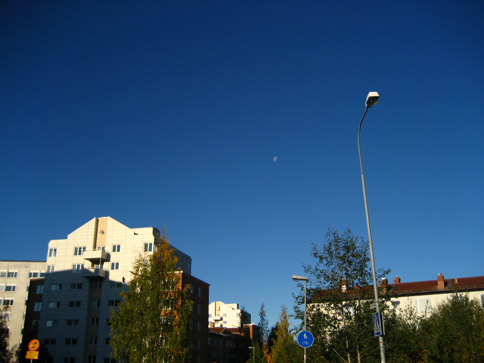 出門上課,月亮還是高掛在頭上,但是她很蒼白