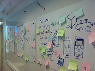 Per又拿著一疊疊的post it出現,要每個人針對這些海報上的討論結果,或者品牌提出個人意見