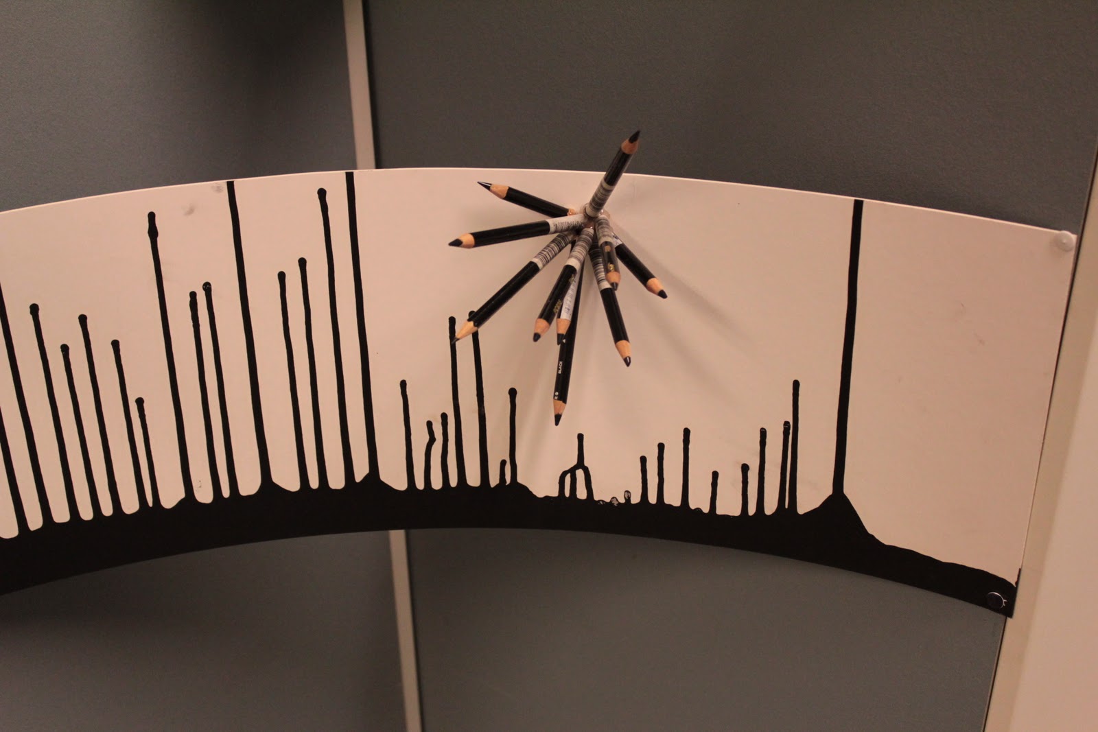 他蒐集了幾根短到不能寫字的鉛筆,削尖,掛在書櫃上當作吊飾