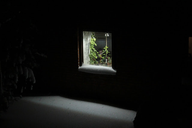 雪其實已經快要淹到一樓窗邊,邊上這一盞明燈卻像頂端發亮的魔杖,想盡辦法要逼退雪怪
