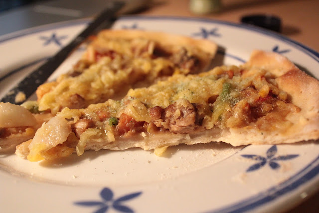 我們最後弄出了一個curry pizza, 只是有點太濕,下次知道不能放太多醬囉