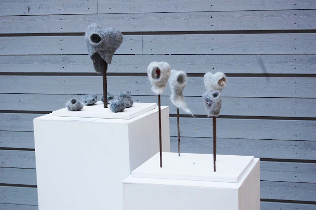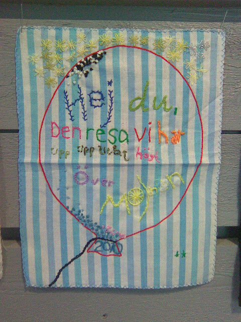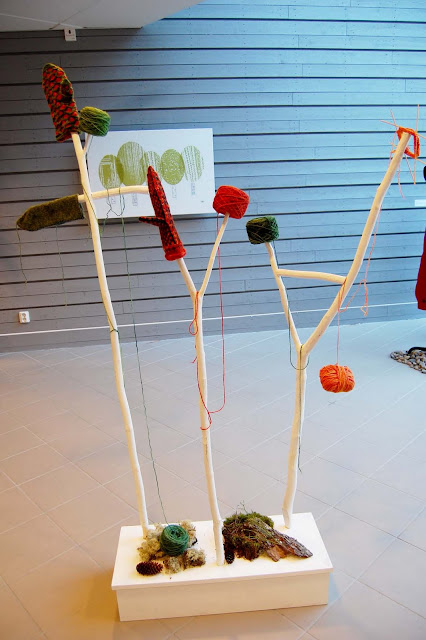 Yui的瑞典朋友在學校主修Textile,上週四在main campus的natural building(我覺得是隨便找個有空的大樓lobby就可以擺)裡面辦了一個展覽.展覽雖小,但是好天氣透過玻璃屋頂撒在這些五顏六色的作品上面,感覺裡面有長著翅膀的小精靈飛出來,告訴你瑞典春天的故事