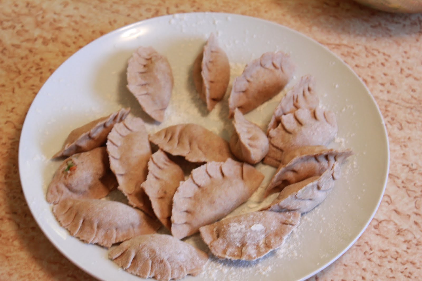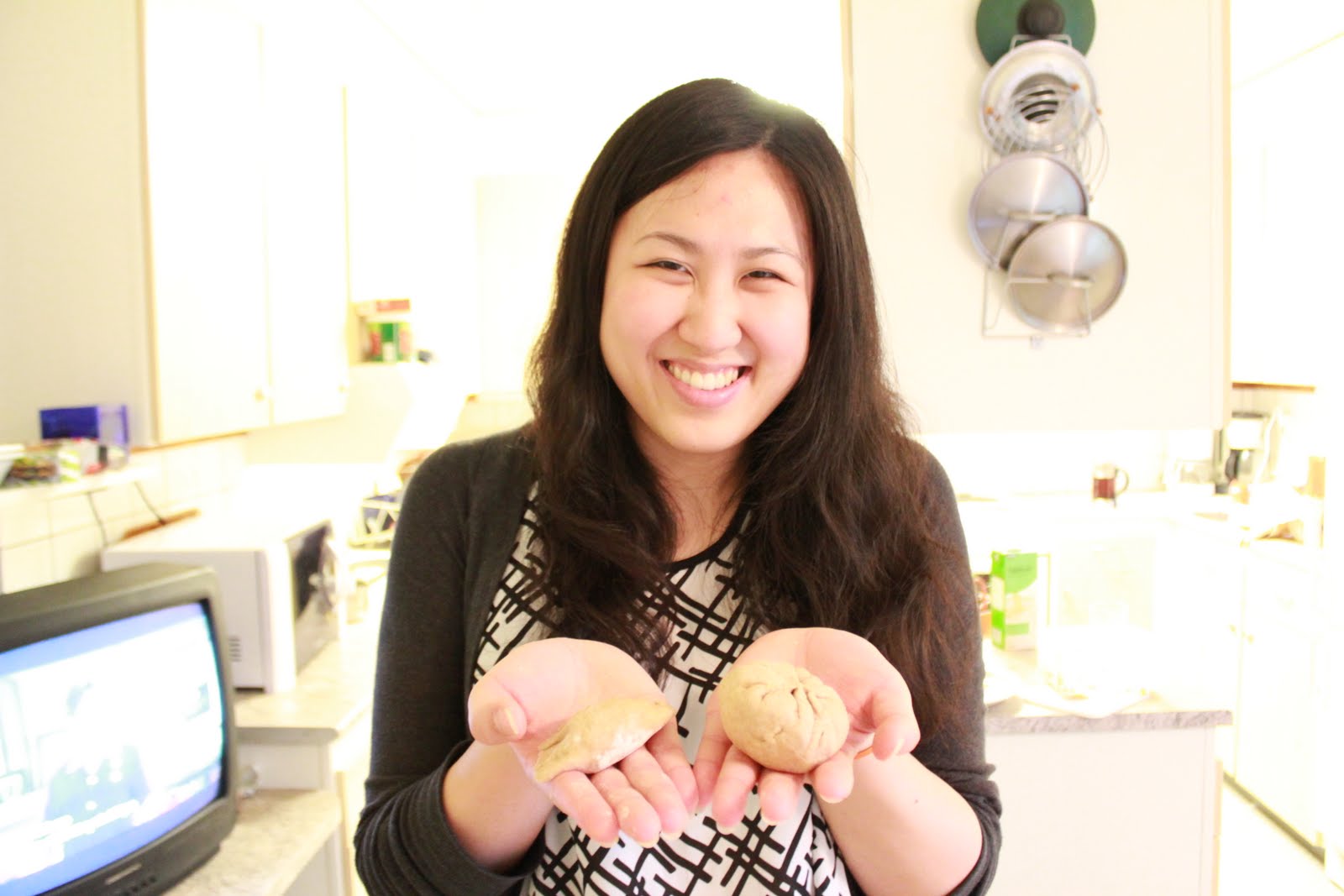 因為沒有桿麵棍,betty很聰明的拿了杯子當成模型來作餃子皮