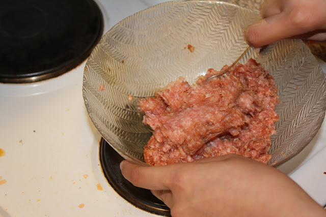 拌絞肉的時候加點胡椒,鹽巴,麻油,醬油