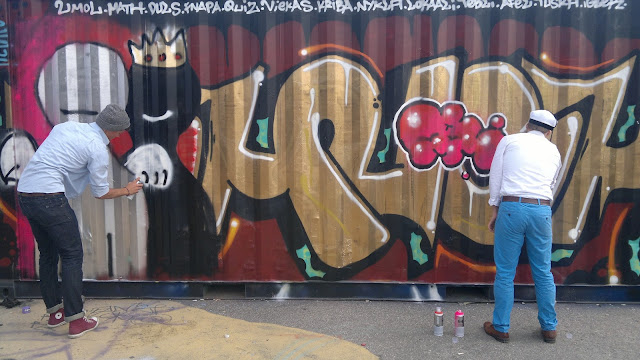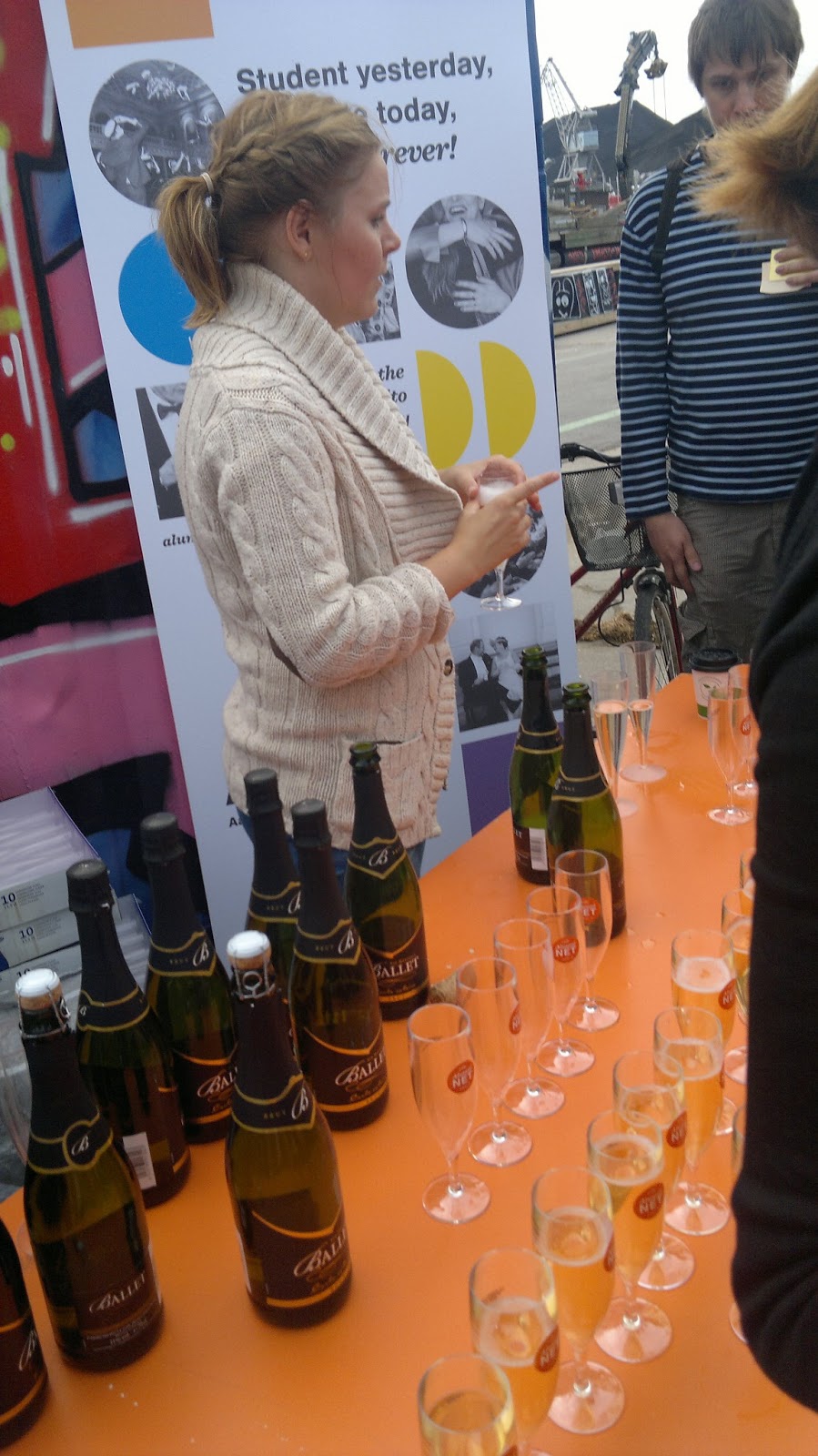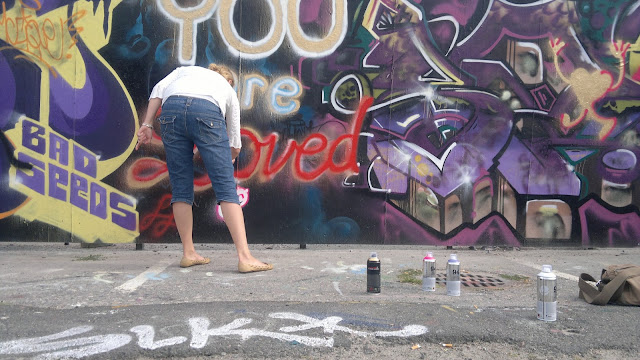 不知道是哪裡來的芬蘭同校同學,已經開始拿個噴漆罐開始畫了。學生會準備了一堆噴漆罐跟香檳,當作慶祝我們正式開始在芬蘭的"學校人生"。
