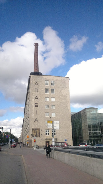 這裡以前是一個舊工廠,主要生產玻璃製品。學校附近的一大塊區域跟這間工廠也都是同個名字,"Arabia"。為何?以前芬蘭人對於藝術跟設計這回事,總覺得有異國風味的比較美。在他們心中最有異國風味的就是阿拉伯風格,於是這個充滿藝文氣息的區域有了個很東方的名字。