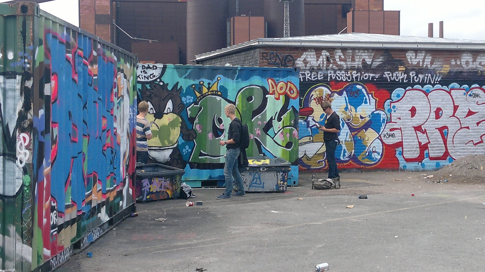 Orientation結束之後,下午就被巴士載著在市區作city tour,然後被載去了一個不知道是哪裡開了After party...。事後問問,纔知道這個區域叫做Suvilahti,是Helsinki市中心早些年代時的工業區,現在基本上只剩下一個火力發電廠運作,所有的工廠被移除,一棟棟漂亮的住宅大樓不停地冒出來。在這個區域一邊被整頓,一邊清理的同時,也變成了街頭藝術家或塗鴉愛好者的天堂。