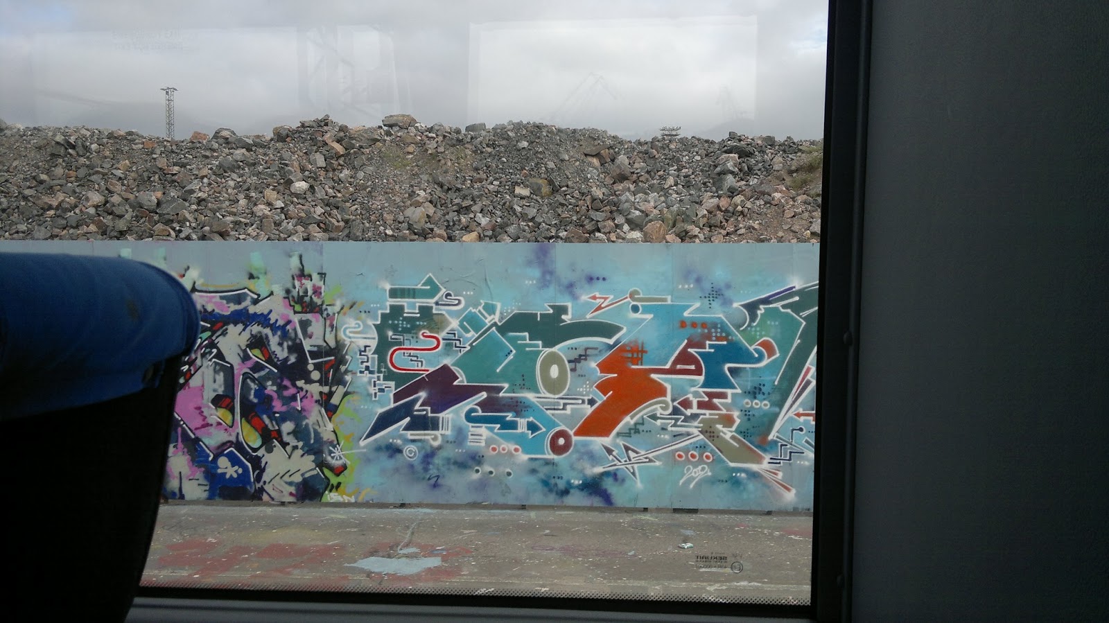 從巴士窗外看去真是詭異的不得了,瓦礫堆跟不知道是在畫什麼的塗鴉。