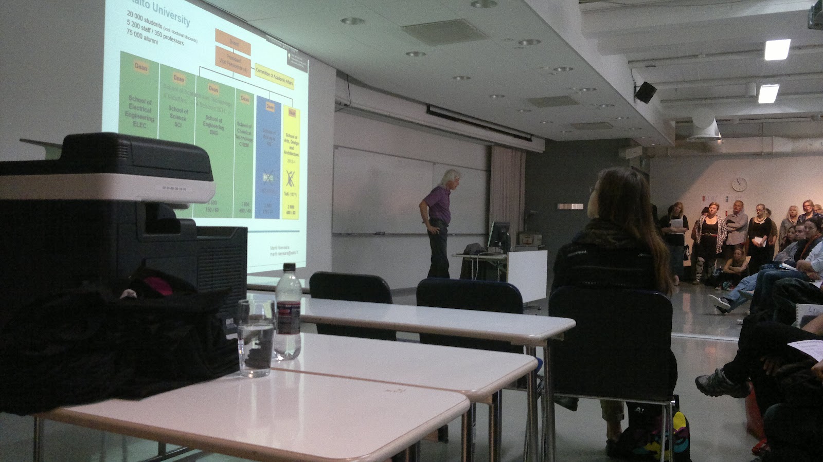 最後是系上Coordinator簡介一下課程內容跟修課的注意事項。到這個時候又讓我另外開了一次眼界。不知道是不是因為Aalto學生跟系所太多,所以學校把各項資訊細分成很多個Portal。我們最常用到的Portal大概就會有四到五個,還不包含一些資訊分享平台...。到目前為止我的bookmark裡面應該有超過十個以上的Portal了吧?