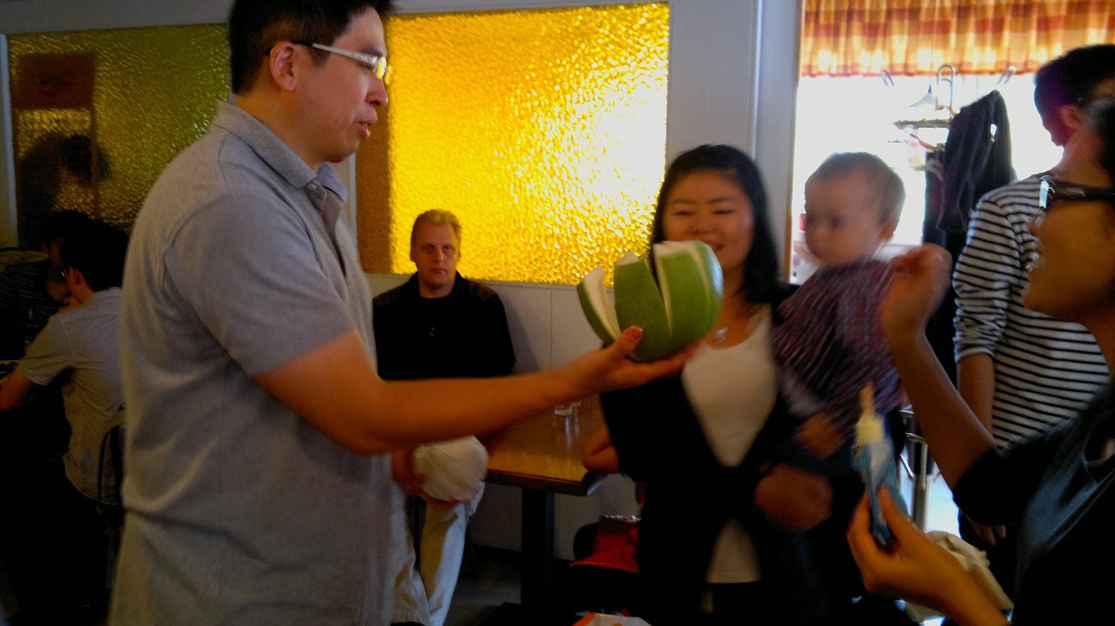 吃吃喝喝一番,肚子餵飽,中秋節的好戲才要上場。將將!柚子!可是看起來好小顆唷,而且包成這樣,不像台灣是整車整車地賣著大粒飽滿的綠色寶石,就忽然開始好思鄉啊...。