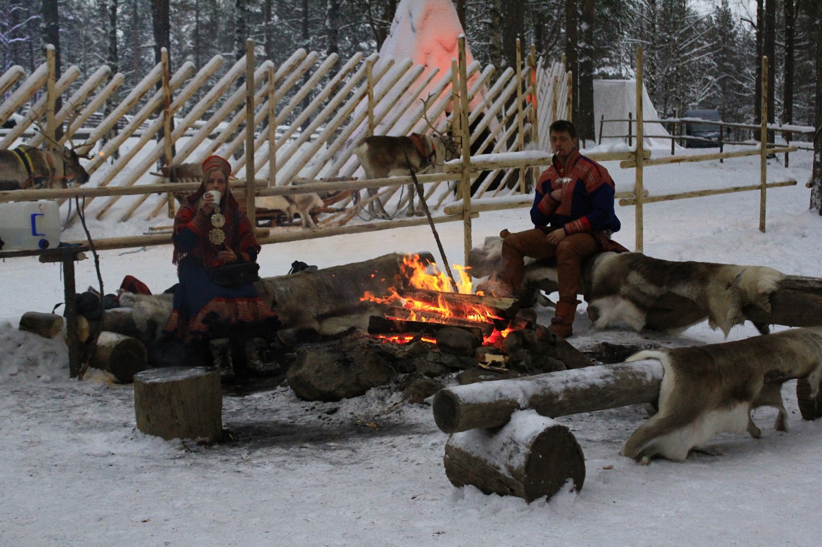在村子的旁邊有穿著Sami衣服的當地人提供馴鹿搭雪橇的付費服務,一樣貴鬆鬆,三百公尺十二歐元。