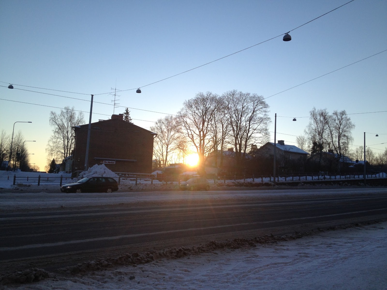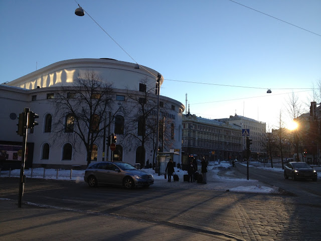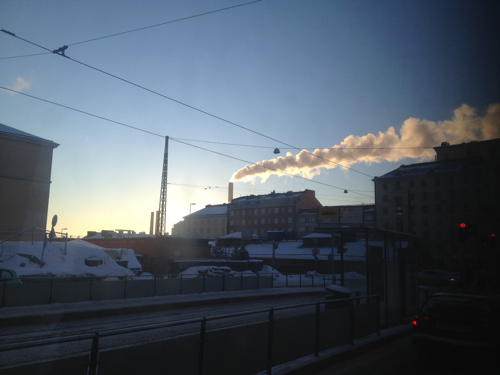 不過就算冷,難得好心情露臉的太陽總是讓人覺得今日適宜外出。搭著電車晃啊晃,一路就從家裡晃去Kamppi。遠方的發電廠正在努力抵抗寒冷,噗嚕噗嚕地吐著白煙。