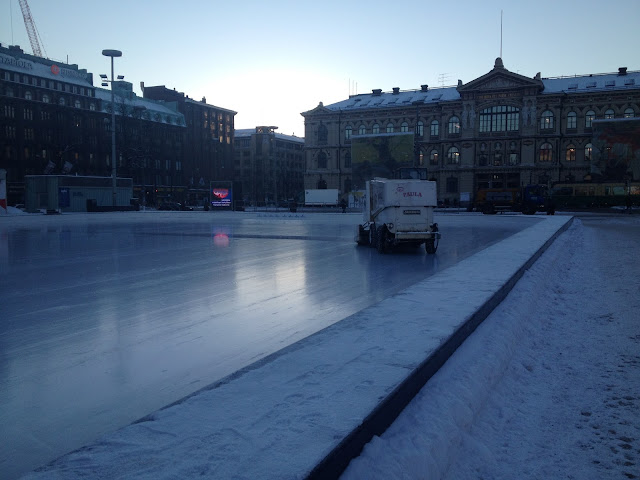 火車站前面的溜冰場趁著大冷天沒人上門,徹徹底底把冰打了個光滑。