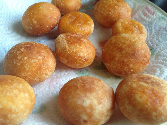 從台灣來的時候,帶了一包地瓜粉,但怎麼也想不到消耗這個東西的用途。某日在跟這裡的太太們聊天時,有人突然提到地瓜球。是啊!地瓜球!真是個太好的靈感了,馬上就來作吧!之前在Umea的時候,韜哥曾經非常厲害地作出夜市版的專業地瓜球,不知道這次換我自己作,會不會變成爆漿版?!