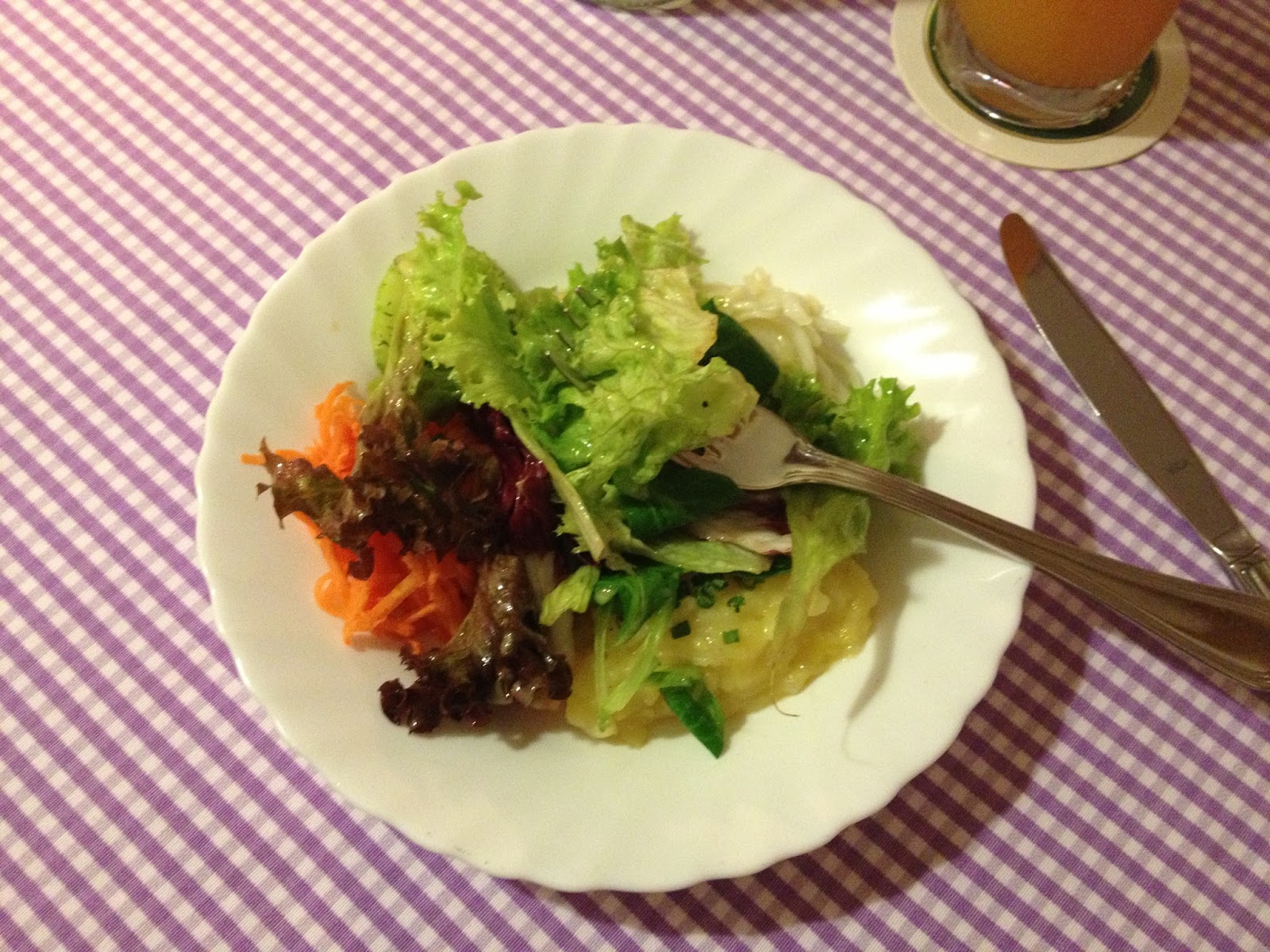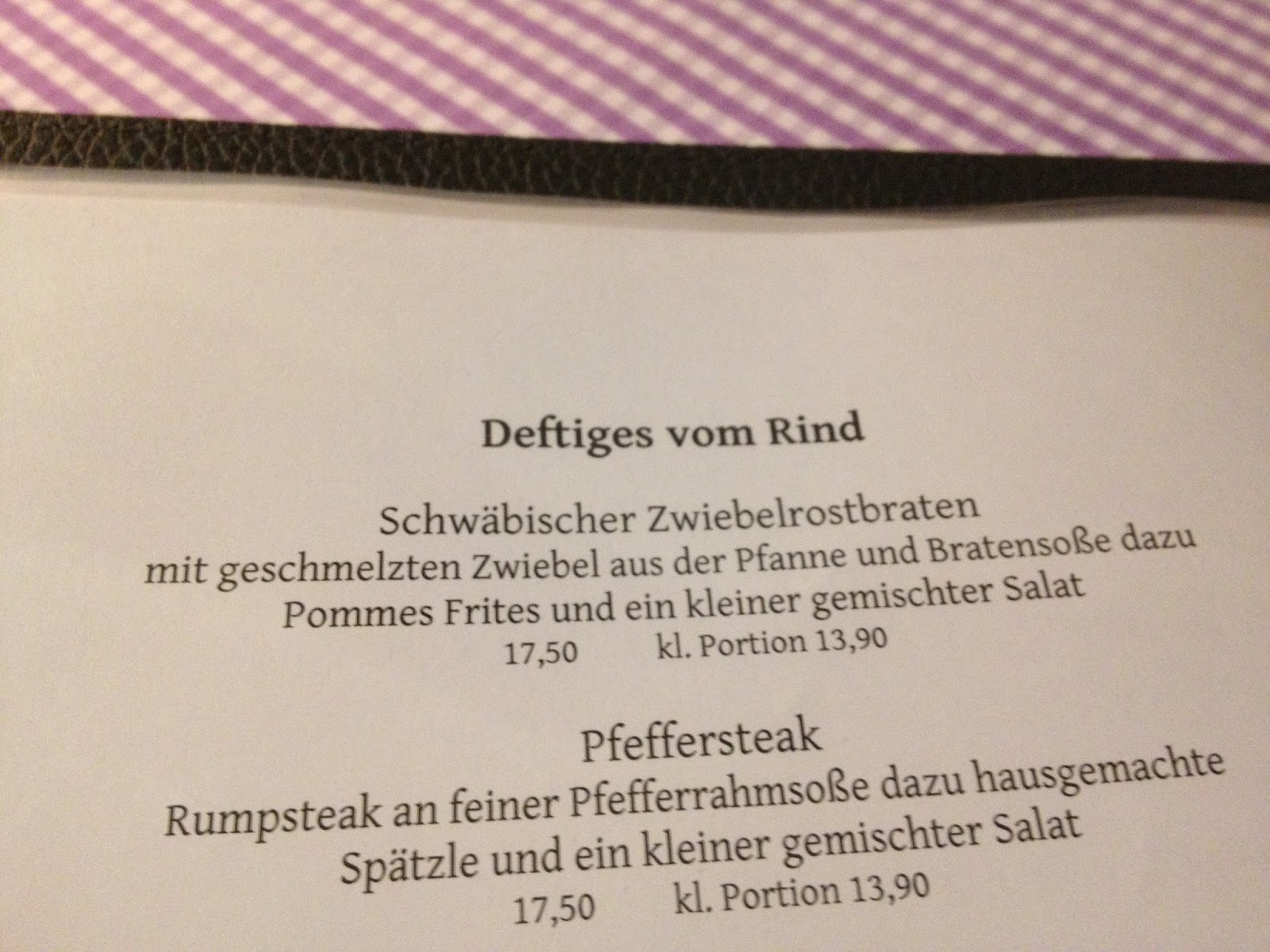 四個人驅車往隔壁村莊的小餐館,也是在這方圓十里之內唯一的一間史瓦本菜。反正我看不懂德文,就讓他們幫我點了“道地”的餐點囉。